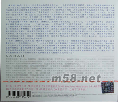 女人心(m58.net) 陳淑樺,她是七十到八十年代最成功的華語女歌手之一,也是曾感動數百萬聽眾,都會女子與情歌的最佳代言人,而一向不是以造型或嘩眾取寵的表演受到歡迎的她,經歷了許多不同的歌唱階段才成為唱片界的票房保證,而讓陳淑樺的聲勢達到登峰造極的地位,就是從她加入[EMI唱片]開始,所推出的專輯所為她奠定下來的。在[EMI唱片]的這個階段,陳淑樺推出了[星光滿天]、[海洋之歌]、[浪跡天涯]、[無盡的愛]、[情],以及她的第一張英文專輯[The right to sing]等唱片。這些專輯中的所有歌曲,曲風之豐富 、類型之多樣,讓陳淑樺著實的成為七十到八十年代,橫跨國語、英文專輯第一暢銷量的女歌手。也在這段期間,她代表華視獲得了金鐘獎最佳女歌手的殊榮,也為自己的演藝生涯建立了一個新的里程碑。 因為發行權利的轉移,陳淑樺在[EMI唱片]后期的[等待風起]、[女人心]、[明天還愛我嗎],以及兩張英文專輯[Miracle of love]、[Hold me now],從原本的發行公司[四海唱片],轉移到了[滾石唱片]。因此以上幾張專輯,運用到當時[滾石唱片]龐大又豐富的資源,包括整張唱片的制作、企劃、包裝等等的操作。于是從[等待風起]專輯開始,在陳淑樺的專輯中,又放進了大量的本土音樂創作的元素。不管是商業掛帥的鈕大可、吳大衛等當紅音樂人,或者是理想氣質派的陳升、李宗盛、李正帆等等。經過重新定位之下,陳淑樺都會女子代言人的形象,無人能出其右。每一首歌曲都深深地讓女人心有戚戚焉,也讓男人為之感動。從此,陳淑樺的音樂作品,又堂堂的進入了另一個階段。而這幾張專輯,當時在臺灣只出版卡帶和唱片,只有少量CD進口,因此也造成近年網路標價高達上萬元仍一片難求的奇景。 在和[EMI唱片]約滿之后,陳淑樺正式的加盟了[滾石唱片]。陸陸續續的推出了許多大紅大紫的歌曲,像[夢醒時分]、[聰明糊涂心]、[一生守候]等等。其中最輝煌的作品當然就是李宗盛為她量身定作的[夢醒時分],這張唱片創下國語流行音樂史上,第一張銷售破百萬的記錄,也帶動了唱片工業很長一段時間的蓬勃氣象。從這個時候開始,屬于陳淑樺的年代到達了最高峰。沒有人的聲勢能比她強,沒有人的歌曲能像她一樣,不管哪一個階層的消費者都愛聽,也許就是因為她如此獨特的氣質與無人取代的聲音表情,讓華語樂壇也沒有人像她一樣,在消失歌壇那么久的一段時間之后,還會讓那么多人對她如此地念念不忘。