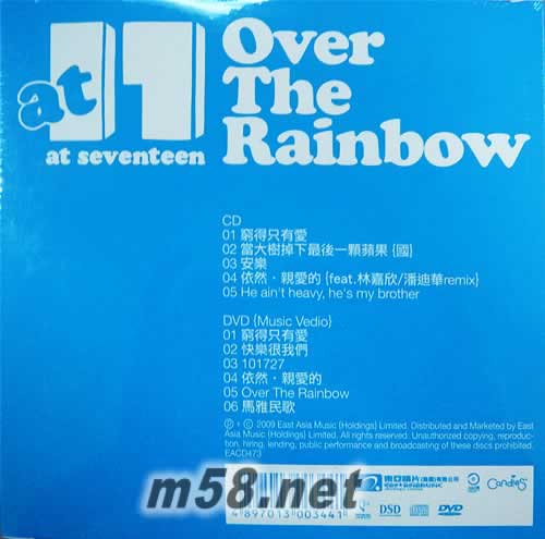 價格為估,以實到貨為準! OVER THE RAINBOW VOL.4(m58.net) OVER THE RAINBOW VOL.14最終 加送RAINBOW系列所有主打歌 MV BONUS DVD 誠意送上六首MV包括: 穿得只有愛/快樂很我們/101727/ 依然。新愛的/OVER THE RAINBOW/ 馬雅民歌 隨碟附送:candies彩虹百寶袋及AT17設計貼紙