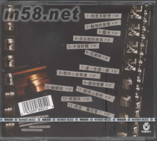 01. 我是多么想 02. 動物的悲歌 03. 靈光 04. 永公街的街長 05. 子夜紓懷 06. 兄弟呀 07. 這一年這一夜 08. 我的心在發(fā)燙 09. 后知后覺 10. 蝴蝶結(jié) 11. 跟得上我吧 12. 我期待 13. 再見 蘭花草!