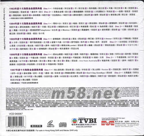 1983-1987十大勁歌金曲頌獎典禮VCD十碟套裝專輯背面圖片