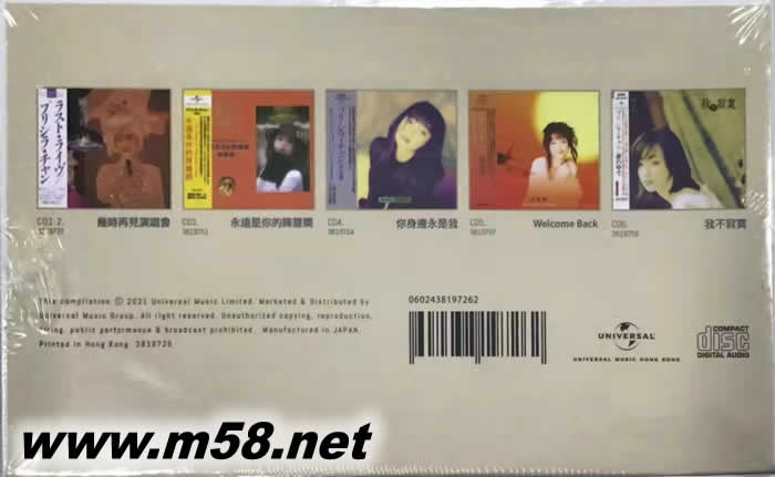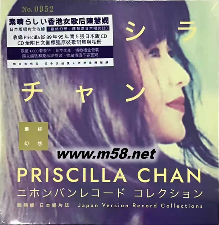 陳慧嫻日本唱片誌 最終幻影PRISCILLA CHAN Japan Version Record Collections (5CD套裝限量版)(m58.net) 明日有明日.但今天的愛(ài)人 依然是陳慧嫻 最終幻想 陳慧嫻 日本唱片誌 PRISCILLA CHAN Japan Version Record Collections 香港女歌后 陳慧嫻 日本版唱片全收錄 收錄Priscilla從89-95年間 5張日本版CD CD全附日文側(cè)標(biāo)連原裝歌詞集與相冊(cè) CD日本生產(chǎn) 精致禮盒裝潢 外盒三面採(cǎi)用「熨金」壓印 字樣.專色專紙印製