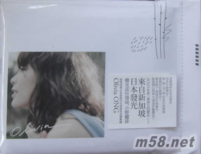 奧莉維亞(王儷婷) Olivia 同名專輯 臺(tái)灣版(m58.net) 來自新加坡 日本發(fā)光 媲美諾拉瓊絲、小野麗莎 發(fā)燒迷樂友最擁戴的亞洲傳奇美聲歌姬 Olivia Ong 在臺(tái)首張英文大碟「Olivia」 3月5日 正式發(fā)行 傳奇紀(jì)錄 *2005年在日本發(fā)行了首張個(gè)人專輯《A Girl Meets Bossanova》成為首位成功打入日本市場(chǎng)的新加坡歌手,日本樂迷票選十年來最令人心醉Bossanova專輯 *被譽(yù)為媲美小野麗莎的巴莎女伶,出道以來的所有作品都在 HMV拿到83分以上的極高評(píng)價(jià),發(fā)燒迷樂友最擁戴的美聲小天后 *2008年首支中文單曲「如燕」於新加坡933電臺(tái)獲得當(dāng)週第二名的強(qiáng)勢(shì)成績(jī),并登上新加坡網(wǎng)路下載排行榜冠軍 美聲收錄 *超級(jí)星光大道評(píng)審觀眾口碑肯定一戰(zhàn)成名曲- 「Ain’t No Sunshine」 魔王級(jí)溫柔美聲完整收錄 深刻感人再次來襲 *重新詮釋世紀(jì)天團(tuán)The Beatles「Here,There and Everywhere」、英倫靈魂樂領(lǐng)航樂團(tuán)Simply Red「Stars」,經(jīng)典歌曲 溫暖再現(xiàn),忠實(shí)樂迷不可能錯(cuò)過 *個(gè)性演譯七○年代~八○年代女聲金曲「I Feel The Earth Move」、「Luka」 九○年代甜美女聲 隔空致敬 勾起中生代族群的世代記憶 *首波主打歌詞創(chuàng)作「You and Me」、詞曲創(chuàng)作「Bittersweet」 展現(xiàn)創(chuàng)作才華 最能代表Olivia的全新英文專輯 *超偶評(píng)審?fù)踔纹窖u作 星光大道評(píng)審袁惟仁盛讚 兩大音樂人雙雙背書 美國(guó) 新加坡 臺(tái)灣 跨國(guó)音樂製作 專屬打造十首適合心靈獨(dú)享的馳放音樂