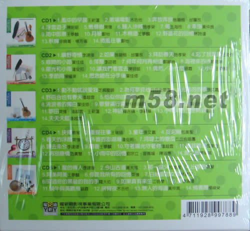 民歌紀(jì)念日(5CD套裝)(m58.net) 新民歌流行風(fēng) 民歌紀(jì)念日 徜祥在民歌飛舞的天際 尋覓遺忘已久的純真滋味 精選民歌回味無(wú)限 超值5CD BOX 聆聽(tīng)昔日旋律重拾舊時(shí)回憶最溫馨的感動(dòng)至今依然清晰