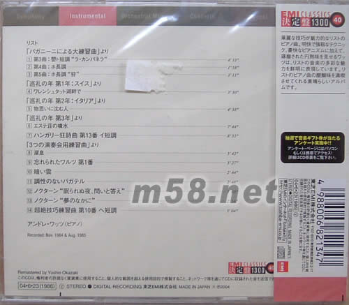 ANDRE WATTS PLAY LISZT曲集(24BIT 日本版)專輯背面圖片
