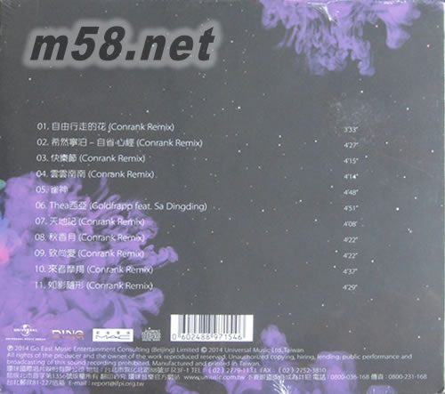 01. 自由行走的花(Conrank Remix) 02. 希然寧泊 – 自省.心經(jīng)(Conrank Remix) 03. 快樂節(jié)(Conrank Remix) 04. 云云南南(Conrank Remix) 05. 雀神 06. Thea (Alternative) 西亞 (Goldfrapp feat. Sa Dingding) 07. 天地記 (Conrank Remix) 08. 秋香月 (Conrank Remix) 09. 致尚愛 (Conrank Remix) 10. 來者摩羯 (Conrank Remix) 11. 如影隨形 (Conrank Remix)