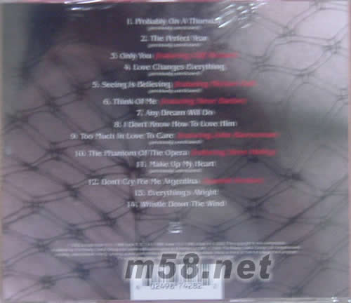 1 Probably On A Thursday 2 The Perfect Year 3 Only You (featuring Cliff Richard) 4 Love Changes Everything 5 Seeing Is Believing (featuring Michael Ball) 6 Think Of Me (featuring Steve Barton) 7 Any Dream Will Do 8 I Dont Know How To Love Him 9 Too Much In Love To Care (featuring John Barrowman) 10 The Phantom Of The Opera (featuring Steve Harley) 11 Make Up My Heart 12 Dont Cry For Me Argentina (Spanish Version) 13 Everythings Alright 14 Whistle Down The Wind