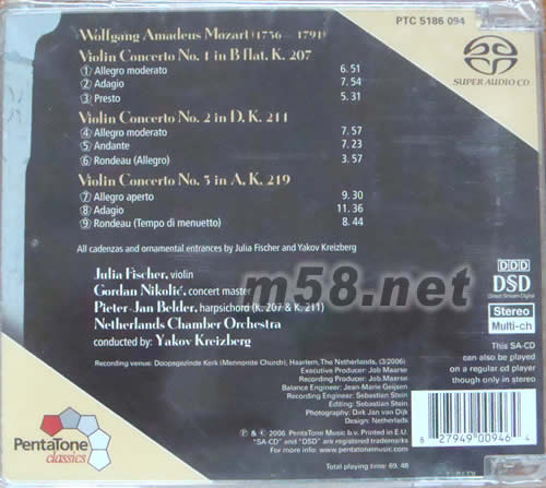 莫扎特小提琴協(xié)奏曲1、2& 5 Mozart Violin Concertos Nos 1,2 & 5 SACD專輯背面圖片