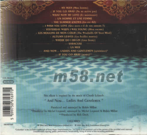 發燒碟中的名品,著名的名碟,絕美的女聲,由著名的PATRICIA KAAS來演唱,聲音飄緲而眷美,如同女子的舞動,象風中搖曳,妖嬈而誘惑。絕對的極品,絕對的收藏。(PATRICIA KAAS)于2002年收集了14首優美迷人的老歌,重新演繹。并且有多首英語翻唱的法語作品,忠實于原汁原味,卻因為擁有了KAAS那迷人的嗓音,從而釀就了這張被發燒友奉為極品的經典作品。