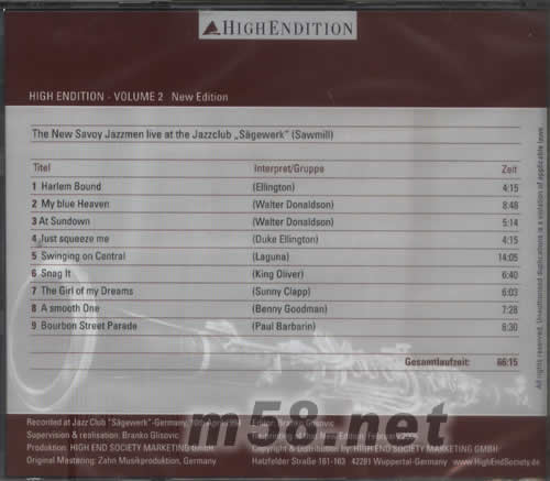 測試 2 JAZZ AT THE SAWMILL LIVE VOLUME 2(m58.net) 另一張靚聲到令人吃驚的爵士錄音則是比較近期的制作,德國高級音響協會 1994年在德國小城MOCHNESEEM-間爵士會所用現場LIVE方式收錄了七人爵士樂隊的演出,除了染聲之外,觀眾的反應亦一一捕捉下來,聆聽此碟,你可感受到爵士會所的空間感和局遭環境的溫暖音樂,而各種樂器的聲音混和觀從的呼吸、唱采聲和掌聲更令人有如在現場聆聽之感,演出曲目全是美國五十年代爵士樂手的演繹細致精巧,與美國胺士傳統的豪放激情相比別有其意境和風味。 這是一個細節多到聽不完的HI-示錄音,錄音電平略低,扭大音量時就可以將整個爵士會所搬到跟前,如果閣下認為(當鋪爵士)已經聽到厭,此碟保證要令你耳目一新。