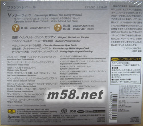 雷哈爾 風(fēng)流寡婦FFRANZ LEHAR DIE LUSTIGE WITWE SACD 日本精裝限量版專輯背面圖片
