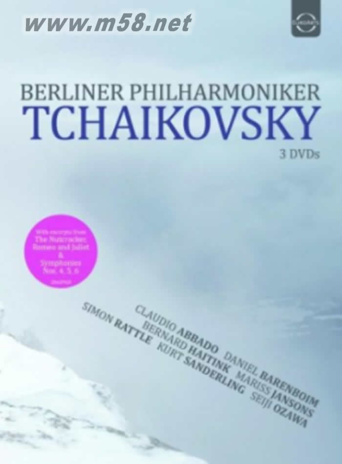 規格 長度:約236分鐘 系統: PCM Stereo, DD 5.1, DTS 5.1/ NTSC/ DVD 1 & 2: 16:9 / DVD 3: 4:3 區碼:全區 級別:普遍級 授權范圍:家用 核準字號:音樂類免送審 § 曲 目 § DVD 1 柴可夫斯基:(選自芭蕾音樂《胡桃鉗》,作品71) 柴可夫斯基:花之圓舞曲(選自芭蕾音樂《胡桃鉗》,作品71) 巴倫波英指揮柏林愛樂 2001年柏林愛樂除夕音樂會,柏林愛樂廳 柴可夫斯基:序曲、圣誕樹、進行曲、雙人舞(選自芭蕾音樂《胡桃鉗》,作品71) 拉圖指揮柏林愛樂 2009年六月,柏林森林劇場露天音樂會 柴可夫斯基:旋律(選自為小提琴與管弦樂團而寫的《回憶佳地》,作品42) 柴可夫斯基:C大調為小提琴與管弦樂團而寫的《詼諧圓舞曲》,作品34 柴可夫斯基:雙人舞(選自芭蕾音樂《胡桃鉗》,作品71) 列賓,小提琴/楊頌斯指揮柏林愛樂 2002年六月,柏林森林劇場露天音樂會 柴可夫斯基:《羅密歐與茱麗葉》幻想序曲 海汀克指揮柏林愛樂 1993年五月一日,英國倫敦皇家亞伯特廳歐洲音樂會 柴可夫斯基:F小調幻想序曲《暴風雨》,作品18 阿巴多指揮柏林愛樂 1998年五月一日,瑞典斯德哥爾摩歐洲音樂會 DVD 2 柴可夫斯基:E小調第五號交響曲,作品64 阿巴多指揮柏林愛樂 1994年十月,日本東京山多利廳 柴可夫斯基:B小調第六號交響曲《悲愴》,作品74 小澤征爾指揮柏林愛樂 2008年一月,維也納愛樂之友協會音樂廳 DVD 3 柴可夫斯基:F小調第四號交響曲,作品36 桑德林指揮柏林愛樂 1992年六月,柏林愛樂廳