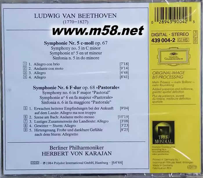 Symphonie Nr.5 c-moll op.67 Symphony no.5 in C mINOR Symphonie n.5 en ut mineur Sinfonia n.5 in do minore 1、Allegro con brio 2、Andante con moto 3、Allegro 4、Allegro