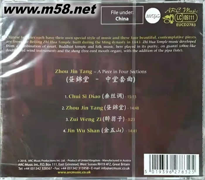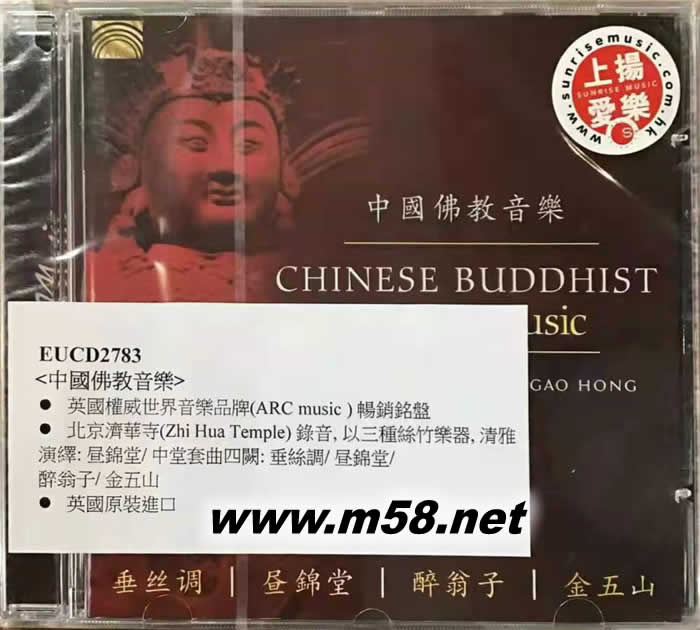中國(guó)佛教音樂(lè)Chinese Buddhist Temple Music(m58.net) 英國(guó)權(quán)威世界音樂(lè)品牌(ARC music ) 暢銷(xiāo)銘盤(pán) 北京濟(jì)華寺(Zhi Hua Temple) 錄音, 以三種絲竹樂(lè)器, 清雅演繹: 晝錦堂/ 中堂套曲四闕: 垂絲調(diào)/ 晝錦堂/ 醉翁子/ 金五山 英國(guó)原裝進(jìn)口