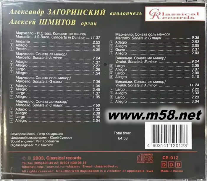 大提琴與管風(fēng)琴 Marcello/ Vivaldi: Works for Organ and Cello(m58.net) 拉赫曼尼諾夫:《悲歌》三重奏,第1&2號(hào) 包羅定三重奏 英國(guó)留聲機(jī)大獎(jiǎng)名盤 黃金陣容演出,默契十足 音樂(lè)質(zhì)感一流,音色溫暖通透 英國(guó)原裝進(jìn)口