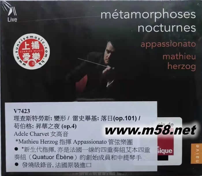 Metamorphoses Nocturnes 理查斯特勞斯: 變形 / 雷史畢基: 落日(op.101) / 荀伯格: 昇華之夜 (op.4)(m58.net) Adèle Charvet, 女高音/ Appassionato 管弦樂團, Mathieu Herzog 新生代指揮, 亦是法國一線的四重奏組艾本四重奏組(Quatuor Ébène)的創始成員和中提琴手 發燒級錄音, 法國原裝進口