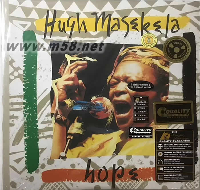 馬塞凱拉 - 希望 HOPE 希望 180g 45RPM LP 黑膠(m58.net) 《希望》(Hope)將向您展示最優秀的音響效果。修?馬塞凱拉(Hugh Masekela),一位南非優秀的小號手,在華盛頓現場錄制了這張一流的碟片。專輯收錄的歌曲,跨越了時間的界限,近五十的歌曲在其中都有體現,從另一個側面也帶領人們去認識修?馬塞凱拉(Hugh Masekela)的人生。 Hugh Masekela的歌聲帶著濃厚的黑人情愫,他吹奏的小喇叭除了極佳的技巧操控, 對于情感的描繪也是一流的!