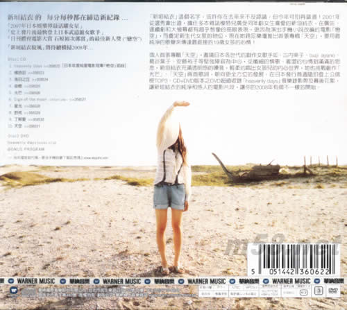 天空(豪華純凈影音版)(m58.net) *公信榜TOP3暢銷專輯、tsuji ayano、古內東子、葛谷葉子、安藤裕子等日本樂壇最強女性創作陣容聯手 *收錄 日本年度純愛電影冠軍「戀空」插曲「heavenly days」 *DVD感心收錄「Heavenly days」音樂錄影帶&驚喜幕后花絮 *初回限定特典:電影「戀空」早場優待券 新垣結衣 的 每分每秒都在締造新紀錄 … 「2007年日本娛樂界最活躍女新人」 「史上發片后最快登上日本武道館歌手」 「2007年NHK紅白歌唱大賽評審」 「日刊體育電影大賞 石原裕次郎賞」的最佳新人獎 (“戀空”) 新垣結衣 小檔案 生日:1988年6月11日 出生地:沖繩縣 興趣:畫畫、唱歌 #_2001年因為參加選秀會而踏入演藝圈,初期擔任多本雜誌模特兒,2006年連續接演「東大特訓班」、「MY BOSS MY HERO」兩部日劇,加上知名餅乾「Pocky」產品廣告,人氣暴沖!2007年接連演出三部電影,其中手機小說改編之純愛作品「戀空」票房更逼近40億日幣,12月5日以專輯「天空」,正式跨足日本樂壇,締造「女演員轉戰樂壇最快登上武道館」開唱紀錄。 「新垣結衣」這個名字,或許你在去年來不及認識,但今年可別再錯過!2001年從選秀會出道,擔任多本雜誌模特兒廣受同年齡女生喜愛的新垣結衣,在廣告、連續劇和大螢幕都有超乎想像的亮眼表現,更因為演出手機小說改編的電影「戀空」,而奠定新生代女星的地位,現在她跨足樂壇推出首張專輯「天空」,要用最純凈的歌聲來傳達最直接的19歲女孩的心情! 個人首張專輯「天空」,邀請日本各世代的創作女歌手如:古內東子、tsuji ayano、葛谷葉子、安藤裕子等堅強陣容,從纖細的情歌、羞澀的心情到滿滿的思念,新垣結衣充滿透明感的嗓音,輕柔的唱出女孩兒的內心世界,她也挑戰創作「光芒」、「天空」兩首歌詞,朝向更全方位的發展。在日本發行首週隨即登上公信榜TOP3。CD+DVD版本之DVD超值收錄「heavenly days」音樂錄影帶及幕后花絮,讓新垣結衣的純凈和感人的電影片段,讓你的2008年有個不一樣的開始。