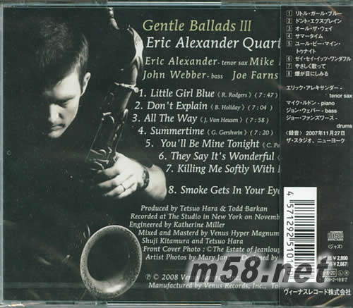 真我情懷(三)(m58.net) 真我情懷(三) 美國當(dāng)紅昔士風(fēng)巨星Eric Alexander 以四重奏演繹多首名曲,動人的夜旋律牽起了浪漫情懷,在經(jīng)典的樂章中滲透出濃烈的爵士韻味,日本Venus遠赴紐約頂級錄制。