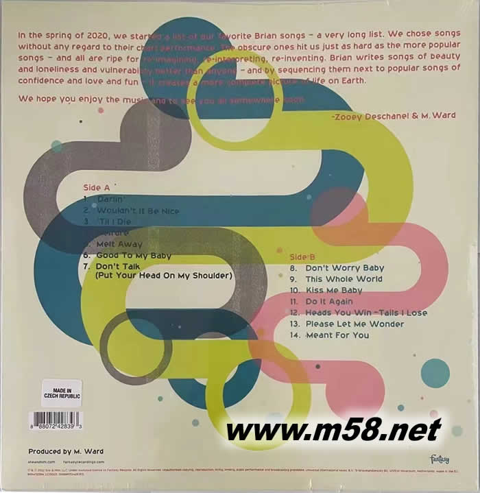 SHE & HIM Melt Away: A TRIBUTE TO BRIAN WILSON 黑膠專輯背面圖片
