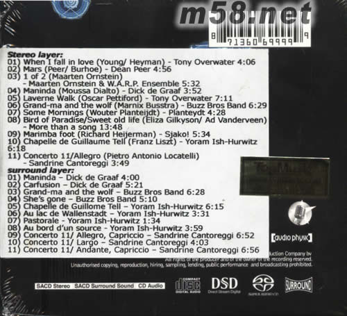 Audio Physic CD-SACD Stereo-Surround Sampler德國HIGH-END喇叭品牌SACD專輯背面圖片