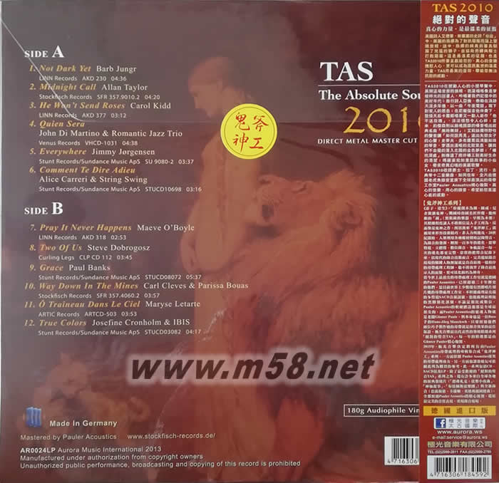 TAS 絕對(duì)的聲音LP 2010 180g 33RPM LP 鬼斧神工 黑膠 限量版黑膠背面圖片