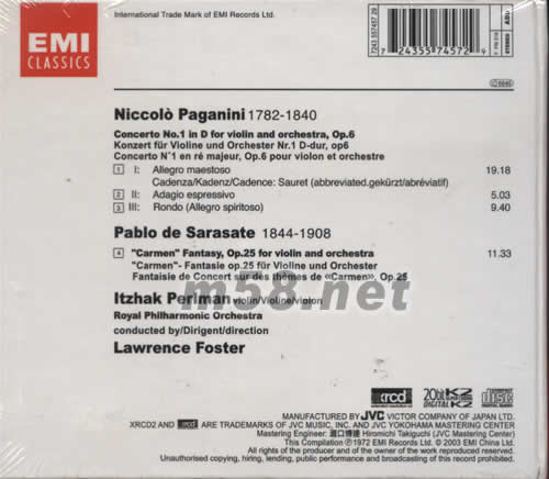 PAGANINI小提琴協(xié)奏曲 卡門 XRCD專輯背面圖片