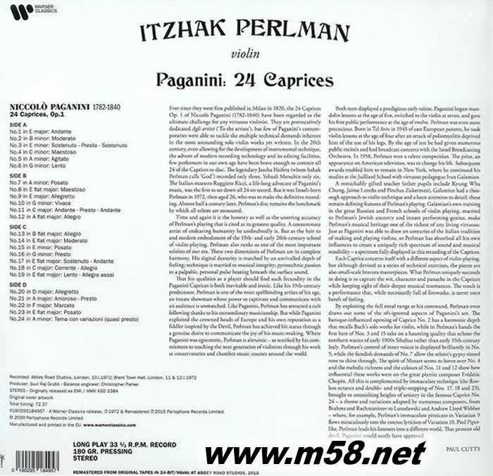 Paganini : 24 Caprices 帕格尼尼:廿四首隨想曲 雙黑膠專輯背面圖片