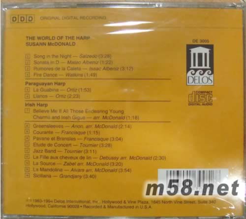 1.Song in the Night-Salzedo 2.Sonata in D-Mateo Albeniz 3.Rumores de la Caleta-lsaac Albeniz 4.Fire Dance-Watkins 5.La Guabina-Ortiz 6.Llanos-Ortiz 7.Believe Me lf All Those Endearing Young Charms and lrish Gigue-arr.McDonald 8.Greensleeves-Anon.arr.McDonald 9.Courante-Francisque 10.Pavane et Bransles-Francisque 11.Etude de Concert-Tournier 12.Jazz Band-Tournier 13.La Fille aux cheveux de lin-Debussy arr.McDonald 14.La Source-Zabel arr.McDonald 15.La Mandoline-Alvars arr.McDonald 16.Siciliana-Grandjany