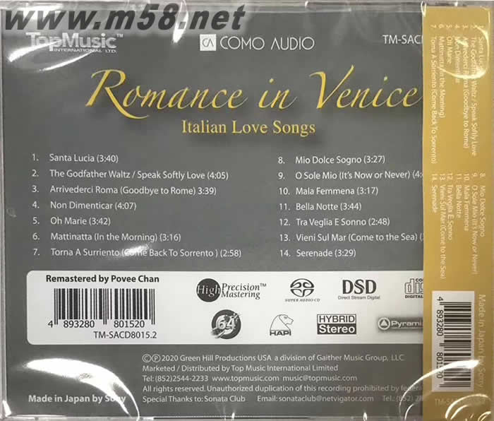 情迷威尼斯 意大利情曲 ROMANCE IN VENICE SACD專輯背面圖片