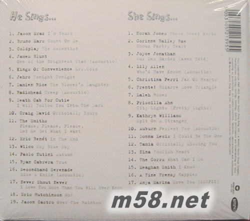 DISK 1 CD 1. Jason Mraz - I`m Yours 2. Damien Rice - The Blower`s Daughter 3. Bruno Mars - Count On Me 4. Tamia - Officially Missing You 5. Kings Of Convenience - Mrs.Cold 6. The Smiths - Please, Please, Please, Let Me Get What I Want 7. Kathryn Williams - Spit On A Stranger 8. Nina - Foolish Heart 9. Eric Benet - In The End 10. James Blunt - One of the Brightest Star 11. Donna Lewis - I Could Be The One 12. Auburn - Perfect Two 13. Christina Perry - Jar Of Hearts 14. Death Cab For Cutie - I Will Follow You Into The Dark 15. Frente! - Bizarre Love Triangle 16. Wilco- Sky Blue Sky 17. Joyce Jonathan - Sur Mes Gardes (Avec Tete) 18. Secondhand Serenade - Like A Knife DISK 2 CD 1. Radiohead - Creep (Acoustic) 2. Coldplay - The Scientist 3. Norah Jones - Those Sweet Words 4. Jehro - Tonight Tonight 5. Craig David - Officially Yours 6. Corinne Bailey Rae - Choux Pastry Heart 7. Lily Allen - Who`d Have Known (Acoustic) 8. Ryan Cabrera - True 9. Anya Marina - Move You(SSSPII) 10. Paolo Nutini - Autumn 11. Priscilla Ahn - City Lights (Pretty Lights) 12. A Fine Frenzy - Happier 13. The Corrs - What Can I Do 14. Eric Hutchinson -Oh! 15. Jason Castro - Over The Rainbow 16. Laleh - Roses 17. Meaghan Smith - I Know 18. Never Shout Never - I Love You More Than You Will Ever Know
