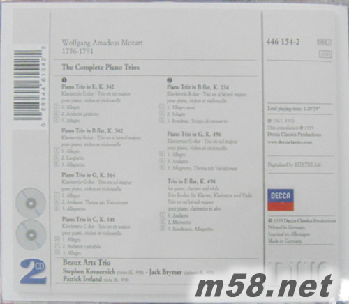 莫扎特:鋼琴三重奏全集 單簧管三重奏MOZART THE COMPLETE PIANO TRIOS 白色封面雙CD專輯背面圖片