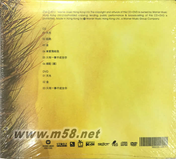 CD 01. 天光 02. 起跳 03. 金 04. 拿愛(ài)情給我 05. 只有一事不成全你 06. 錯(cuò)配 (國(guó)) DVD 1. 天光 Music Video 2. 金 Music Video 3. 只有一事不成全你 Music Video