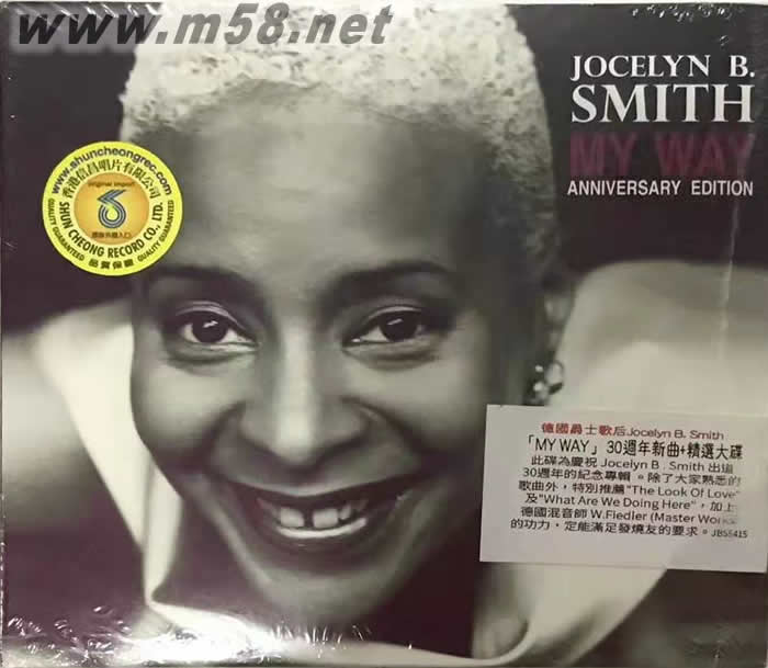 爵士天后 MY WAY 三十周年紀念專輯(m58.net) 爵士天后Jocelyn B. Smith歌唱生涯30週年紀念專輯 爵士天后Jocelyn B. Smith出道超過30年,總共推出15張專輯,以優(yōu)異的唱功聞名樂壇。1960年出生於紐約的皇后區(qū),1984年到德國柏林發(fā)展,1985年在德國發(fā)行第一張專輯「Midnight Lover」,同時自組「The Merride Men」樂團。音響迷最熟悉的莫過於她在1997年推出的現(xiàn)場演出專輯「Live In Berlin」,即興活生的錄音讓人難忘。這張專輯是為了紀念Jocelyn B. Smith歌唱生涯30週年而推出,光是第一首「My Way」蕩氣迴腸的演唱就為這張專輯寫下最佳註腳。