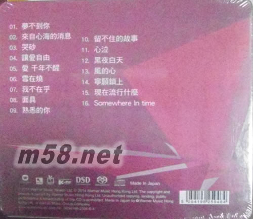 1.夢不到你 2. 來自心海的消息 3. 哭砂 4. 讓愛自由 5. 愛 千年不醒 6. 雪在燒 7. 我不在乎 8. 面具 9. 熟悉的你 10. 留不住的故事 11. 心泣 12. 黑夜白天 13. 風的心 14. 寧愿鎖上 15. 現在流行什么 16. Somewhere In time