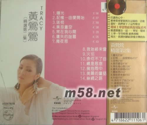 精選第2集(留聲經典復刻版系列)(m58.net) 任誰的心中, 都會想要緊緊抓住這樣的一首歌, 還好,我們留下了這些聲音。 環球上華留聲經典復刻版系列 精選寶麗金、綜一、華星、環球、上華...等等時期 經典專輯。 現在,低價回饋給深愛音樂的你。