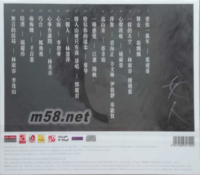 01 葉璦菱 愛你一萬年 02 龍飄飄 舞女 03 林淑蓉 樓湘靈 一樣的天空 04 姚蘇蓉 心聲淚痕 05 聚萍 06 高山青 07 一種感覺 08 恰似你的溫柔 09 情人山坡只有我 10 一個人 11 心雨 12 心事有誰問 13 巧合 14 癡癡纏 15 陪酒 16 無言的結局