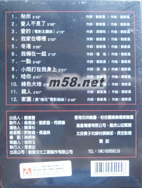 01. 黏你 02. 愛人不見了 03. 愛的 04. 我家在那里 05. 冬港 06. 我倆在一起 07. 一點 08. 小雨打在我身上 09. 念你 10. 綠色大地 11. 親人 12. 家園