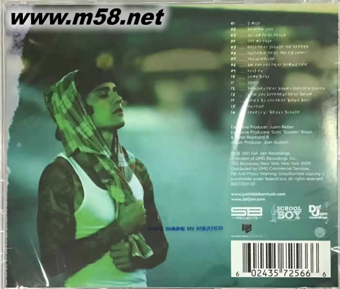 1. 2 Much 2. Deserve You 3. As I Am (feat. Khalid) 入圍葛萊美獎超人氣R&B天王幫腔 4. Off My Face 5. Holy (feat. Chance The Rapper) 饒舌巨星Chance The Rapper幫腔 全球數(shù)位串流突破4億次收聽 6. Unstable (feat. The Kid LAROI) 7. Interlude 8. Die For You (feat. Dominic Fike) 9. Hold On MV請臺裔女主角葛曉潔獨(dú)挑大梁 雙週內(nèi)衝破4千萬次收聽 10. Somebody 11. Ghost 12. Peaches (feat. Daniel Caesar and Giveon) 13. Love You Different (feat. BEAM) 14. Loved By You (feat. Burna Boy) 15. Anyone 超深情抒情曲 全球數(shù)位串流突破2億次收聽 16. Lonely (w/ benny blanco) 天王天后指定製作人 班尼布蘭柯量身打造