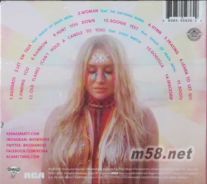 Rainbow(m58.net) Kesha強勢回歸樂壇推出最新大碟, 收錄主打歌.