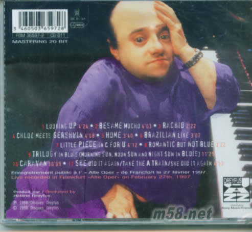 皮特魯西亞尼-現場獨奏 SOLO LIVE(m58.net) 超越外表的缺陷、挑戰體能的極限,法國之子、皮特魯西亞尼(Michel Petrucciani)每次的現場演出總是光芒四射、璀璨耀眼讓人贊嘆不已!熱愛德布西及拉威爾兩位法國印象派古典大師的音樂,皮特魯西亞尼的樂聲充滿了誠摯的情感與如詩般的敘事風格,然而后咆勃爵士出神入化的彈奏技法,讓他的音樂時而行云流水、時而快速猛烈,曲目風格轉換之間自然超越毫不費力! 本張專輯是皮特魯西亞尼于1997年2月27日在德國法蘭克福“Alte Oper”音樂廳現場演奏所遺留下來實況錄音,在整場獨奏會中米榭‧派卓契亞尼使用名琴史坦威D型來展現個人Solo的現場演奏功力,他一共演奏11首爵士曲目,其中9首為他自己的創作經典名曲,專輯一開始就是連續兩首敘事風格強烈的名曲 “Looking Up”與“Besame Mucho”,迷人的樂聲緊扣住每一個樂迷情緒起伏,每一首樂曲間巧妙的結合,無間斷的演奏將大飽樂迷耳福;另外,皮特魯西亞尼在“Romantic But Not Blue”與“Caravan”兩曲內毫無痕跡的加入“Besame Mucho”的旋律,以及完美的將“She Did It Again”演奏成“Take The ‘A’ Train”更讓人讚嘆他的即興超技演出!在這張專輯中,在米榭‧派卓契亞尼鋼琴獨奏下,我們將聽到發自內心、充滿感動的樂聲,AMG給予本張專輯4顆半星的超高評價,是一張所有樂迷都必備的爵士經典名盤!