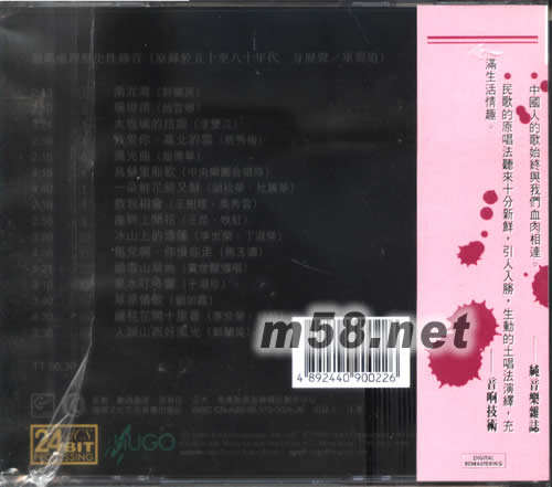[1] 南泥灣(郭蘭英) 3:12 [2] 珊瑚頌(趙云卿) 3:54 [3] 大板城的姑娘(李雙江) 5:46 [4] 我愛你,塞北的雪(殷秀梅) 3:26 [5] 漁光曲(鄒德華) 3:39 [6] 烏蘇里船歌(中央樂團(tuán)合唱隊(duì)) 3:56 [7] 一朵鮮花鮮又鮮(胡松華、杜麗華) 3:46 [8] 敖包相會(huì)(王樹理、吳秀云) 3:58 [9] 崖畔上開花(王昆、牧虹) 3:28 [10] 冰山上的雪蓮(李世榮、于淑榮) 5:26 [11] 馬兒啊,你慢些走(馬玉濤) 5:28 [12] 過雪山草地(賈世駿) 3:27 [13] 泉水叮咚響(于淑珍) 3:17 [14] 草原情歌(劉如霞) 3:15 [15] 緬桂花開十里香(李世榮、舒超) 3:18 [16] 人說山西好風(fēng)光(郭蘭英)