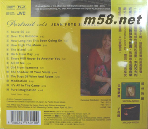 Portrait美聲絕選 2 XRCD(m58.net) 被譽為比爵士歌手更爵士的女歌手的Jean Frye Sidwell,擁有幾近完美中低音域。她的聲線如綢緞般柔滑,聲底暗部層次分明,聆來令人欲醉,與爵士及靈魂歌曲的搭配可說天衣無縫。 這位出生于美國南卡羅萊納,成名于洛杉磯,演唱生涯已超過25年的美聲一姐,想必喜歡聽爵士和人聲的朋友應該不會陌生。 她濃纖合度的甜潤聲線,呈現無限贊嘆的甜美氛圍,歌聲聽來更加悅耳迷人
