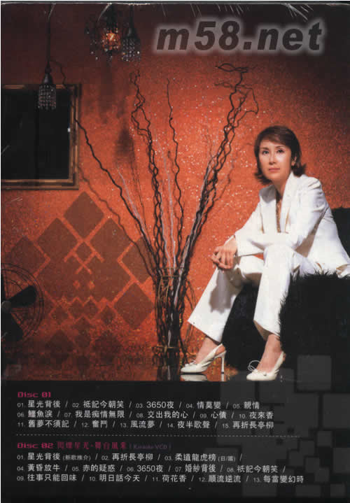 Disc 01 01. 星光背后 02. 只記今朝笑 03. 3650夜 04. 情莫變 05. 親情 06. 鱷魚淚 07. 我是癡情無限 08. 交出我的心 09. 心債 10. 夜來香 11. 舊夢不須記 12. 奮斗 13. 風流夢 14. 夜半歌聲 15. 再折長亭柳 Disc 02 閃爍星光.舞臺風采[Karaoke VCD] 01. 星光背后(新歌推介) 02. 再折長亭柳 03. 柔道龍虎榜(日/國) 04. 黃昏放牛 05. 赤的疑惑 06. 3650夜 07. 婚紗背后 08. 只記今朝笑 09. 往事只能回味 10. 明日話今天 11. 荷花香 12. 順流逆流 13. 每當變幻時
