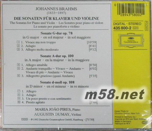 布拉姆斯:鋼琴與小提琴奏鳴曲Brahms:Die Violinsonaten Op.78 ``Regenlied-Sonatas`` Op.100(m58.net)