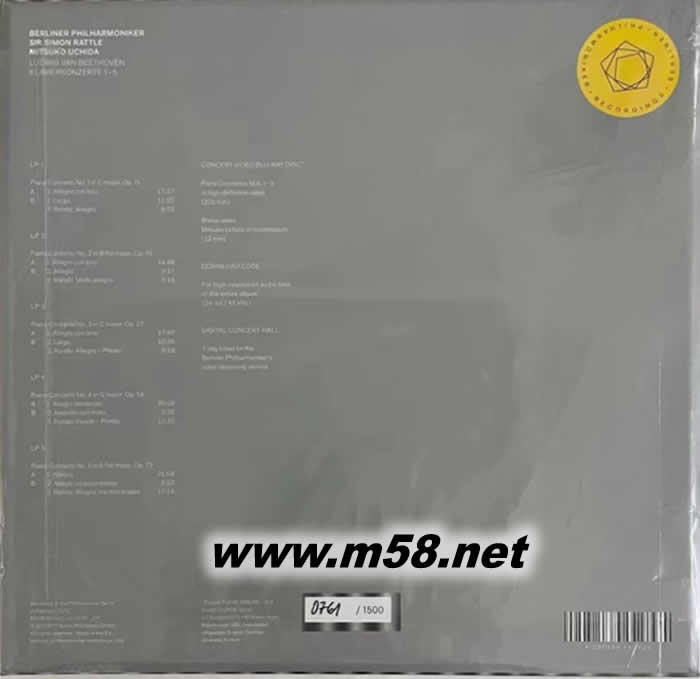 貝多芬:鋼琴協(xié)奏曲全集 BEETHOVEN KLAVIERKONZERTE 1-5 5黑膠套裝(m58.net) ,西蒙拉特指揮/柏林愛樂樂團,全雙5黑膠加一藍光碟現(xiàn)加全高清高檔下載再加7天網(wǎng)上觀看柏林愛樂。全球限量1500套,編號版。