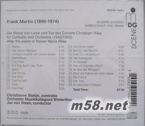 瑞士著名樂團在指揮JAC VAN STEEN 領導下與女低音CHRISTIANNE STOFIJN 演譯作曲家FRANK MARTIN 觸動心靈的法式情曲。