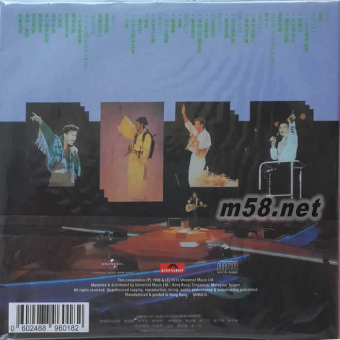 Disc 1 1.星夜 2.Medley : 一生中幾許歡笑/ 錫曬你/ 共妳常為伴/ 應該要自愛 3.香港製造(Made in Hong Kong) 4.青年人 5.Medley :風中趕路人/ 無情夜冷風 6.Medley :哭泣風雨間/ 是雨是淚 7.Medley :在回憶中/ 仍是要走/ 我的心仍屬於您/ 愛是無言 8.Medley :春夢/ 斷腸夢/ 天才白癡夢 9.Medley : 夜夜念奴嬌/ 紙船/ 難忘您/ 天才白癡往日情/ 印象