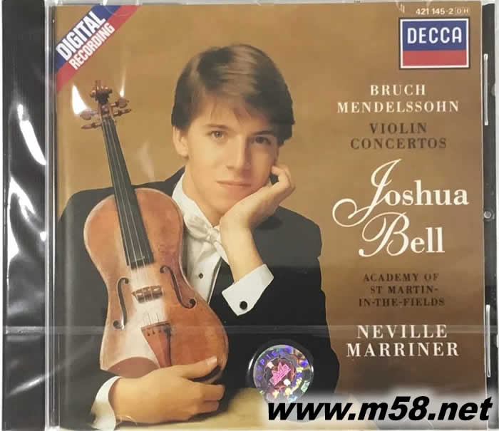 內維爾·馬里納爵士 & 約書亞·貝爾 - 布魯赫 & 門德爾松:小提琴協奏曲 Bruch & Mendelssohn: Violin Concerto(m58.net) 這款1988年出版發行的《布魯赫 & 門德爾松:小提琴協奏曲》,由小提琴家約書亞?貝爾擔任主奏,內維爾?馬里納(Neville Marriner)指揮圣馬丁樂團演出灌錄。 約書亞?貝爾(Joshua Bell)是曾獲得格萊美獎的當代美國小提琴家。出身于印第安納,受業于吉戈德(Josef Gingold),1981年14歲就與費城管弦樂團合作演出,在科蒂斯音樂學院學習,畢業后與美國各大樂團合作協奏曲,也參加室內樂演出。其演奏追求音色的表達與細膩的層次顯示,在室內樂方面似有更好的表現。華盛頓郵報曾稱約書亞?貝爾是他同世代中最好的小提琴家之一。《People》雜志票選他為“全球50大最俊美的人”之一。 內維爾?馬里納(Neville Marriner)1924年4月15日出生于英國林肯。在英國馬里納以指揮圣馬丁樂團(ASMF)出了名,奠定了他指揮家的地位。圣馬丁樂團創建1959年,馬里納一直擔任團長至1978年,其間為Decca、Philips、EMI等唱片公司錄制了大量巴羅克和古典時期音樂的優秀唱片,其中許多榮列企鵝三星帶花、《唱片藝術》最佳金曲名榜。1978-1985年出任美國明尼蘇達管弦樂團音樂總監,1981年又兼任斯圖加特廣播交響樂團首席客座指揮。1979年,馬里納獲得大英帝國爵士勛章,1985年被授予爵士。在這個錄音里他使用的是一把造型非常奇特的吉他形小提琴。 馬里納一生中的主要貢獻除了非常出色地領導了美國明尼蘇達交響樂團以外,另外一個便是他親手組建和培養了后來享譽世界的圣馬丁室內樂團。圣馬丁室內樂團是當今世界上最著名的室內樂團,它的合奏效果極其純靜和細膩,樂隊的音色甜美而富有潤澤感,其織體和層次亦顯得非常清晰和有條理。人們在聽了這個樂隊的演奏之后,第一個感覺就是這個隊具有著豐富的魁力和極有修養的藝術情趣,以上這一切特點的形成,其主要的功績都應該歸功于馬里納對這個樂團的長期培養和訓練。