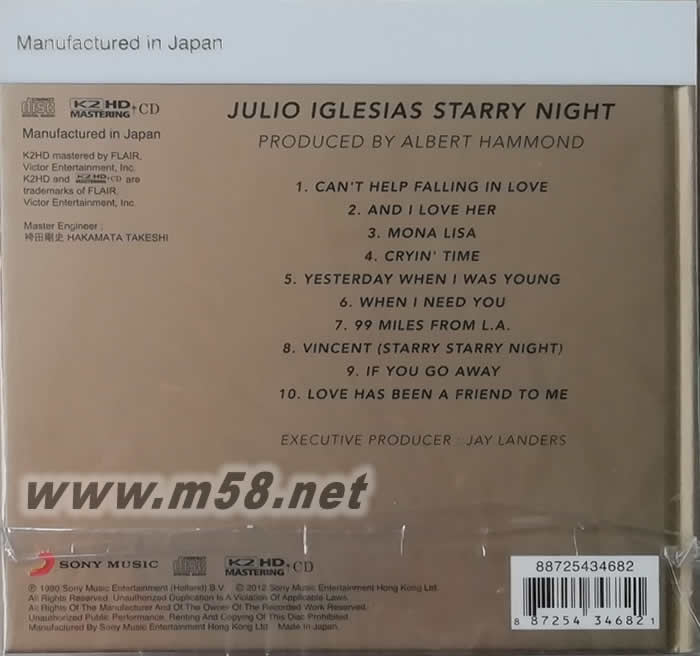 Starry Night (K2HD)(m58.net) 高音質CD 日本壓制 優質之選 K2HD Mastering 藉著母盤處理工程師的音樂觸覺和技術, 以K2 High Definition編碼技術 將原本傾注在母盤音源的樂曲魅力以高達100kHz寬頻帶 和24bit高比特的音頻訊息裝載到各媒體的【K2HD MASTERING】. 在CD mastering上通過把192kHz 24bit的訊息裝 載至44.1kHz 16bit的CD母盤中 是實現了到現在為止從沒有過的高音質化CD