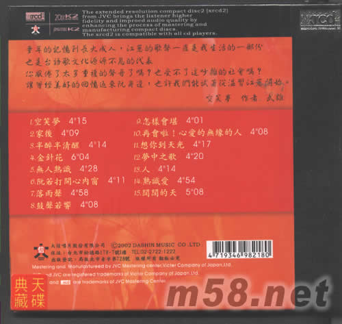 金曲歌手江蕙精選黃金典藏版1 XRCD專輯背面圖片